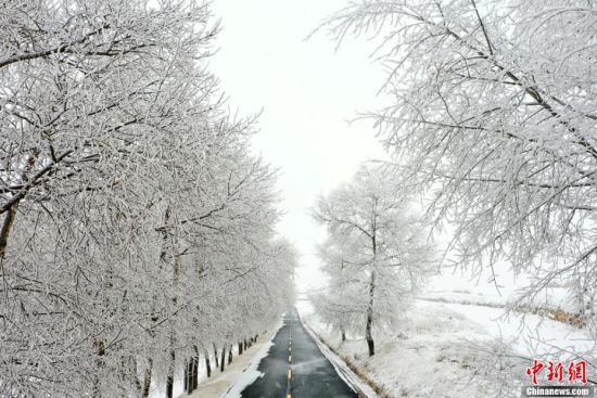 原標(biāo)題:甘肅定西黃土高原現(xiàn)雪凇奇觀