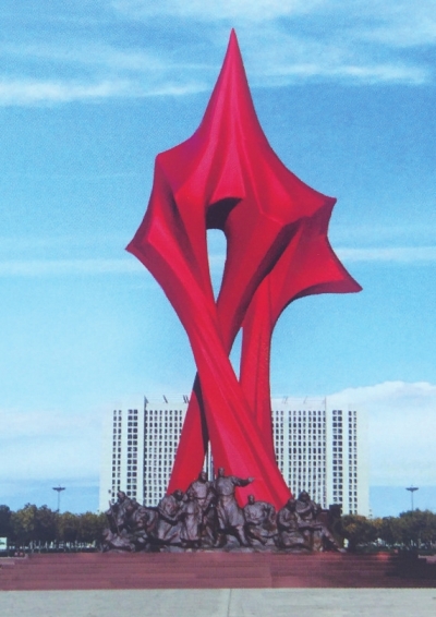 內(nèi)蒙古興安盟是新中國建立的第一個紅色革命自治區(qū),建于1947年,而位于興安盟行署前烏蘭浩特中心公園廣場就有一座何鄂先生創(chuàng)作的不銹鋼城雕《焰紅興安》,是興安盟獨(dú)具特色的標(biāo)志性紅色建筑。