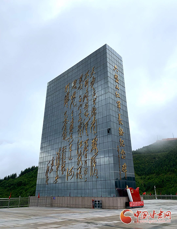 雨中的六盤山,滿目蔥蘢,煙云繚繞……六盤山主峰之上,一座高12米、長60米,由3面紅軍軍旗構(gòu)成,鐫刻著“長征精神永放光芒”八個大字的碑墻,隱約可見。繞過碑墻,拾級而上,就是六盤山紅軍長征紀念館。