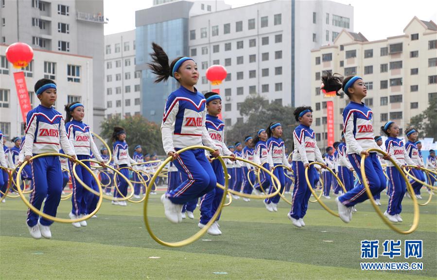 11月4日,蘭州市鹽場堡小學(xué)學(xué)生在活動(dòng)現(xiàn)場展示呼啦圈操。新華社記者 張智敏 攝