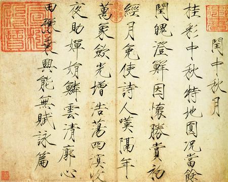 《閏中秋月帖》中所記為一首七言律詩:“桂彩中秋特地圓,況當余閏魄澄鮮。因懷勝賞初經(jīng)月,免使詩人嘆隔年。萬象斂光增浩蕩,四溟收夜助嬋娟。鱗云清廓心田豫,乘興能無賦詠篇。”其內(nèi)容敘述了當年中秋夜?jié)M街華彩、月光皎潔、萬象浩蕩的美景。