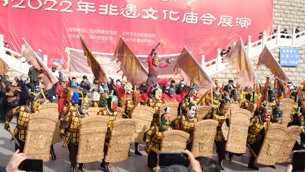 2月2日, 大年初二,“冬奧過大年·文化進(jìn)萬家”蘭州市2022年非遺文化畝會(huì)展演活動(dòng)在甘肅省蘭州市城關(guān)區(qū)金城關(guān)舉行。
