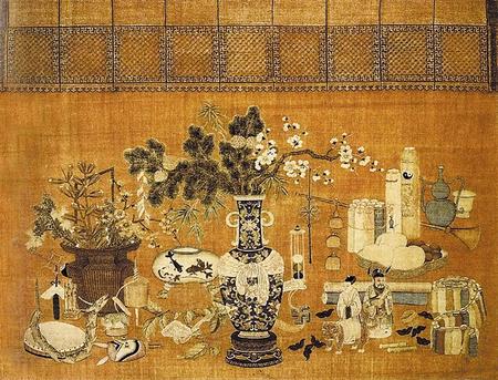 從中我們可以看到,《歲朝圖》常包括兩部分的內容:節(jié)令事物和吉祥事物。