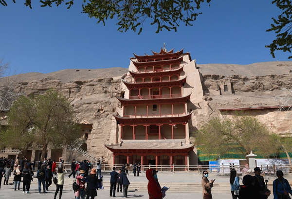 游客在世界文化遺產敦煌莫高窟游覽。張曉亮攝