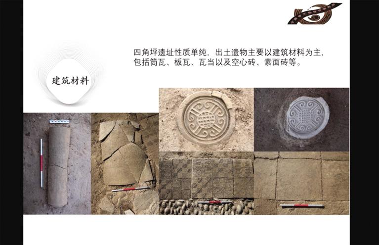 此前勘探發(fā)現(xiàn),四角坪遺址外圍為夯土圍墻,中部為面積約900多平方米的方形夯土臺(tái)基,臺(tái)基頂部四周有回廊式建筑。經(jīng)過(guò)兩年的發(fā)掘,摸清了夯土臺(tái)基的形制,發(fā)現(xiàn)了臺(tái)基中心較特殊的半地穴式建筑,以及臺(tái)基外圍第一排附屬建筑。每組建筑之間有寬約一米的夯土通道連接,建筑周?chē)⒙涓鞣N建筑構(gòu)件,如板瓦、筒瓦、瓦當(dāng)、空心磚等。通過(guò)考古發(fā)掘顯示,四角坪遺址建筑體量巨大,等級(jí)分明,格局規(guī)整對(duì)稱(chēng),是秦帝國(guó)時(shí)期代表國(guó)家意志的禮制性建筑群。
