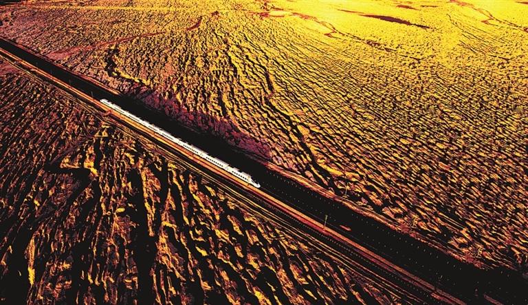 “環(huán)西部火車游”穿越敦煌雅丹地貌區(qū)。