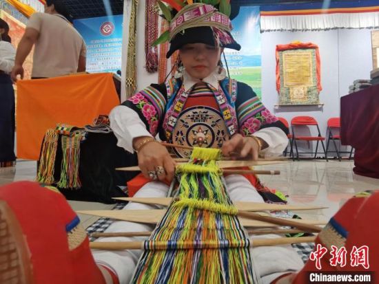 中新網(wǎng)甘肅張掖6月8日電 (閆姣)腳蹬紡織板,手持木梭子,甘肅甘南藏族自治州舟曲縣藏族姑娘全庸卓瑪坐在地上,展示省級(jí)非遺織錦帶,藏族婦女用其束腰、扎靴。她說(shuō),這項(xiàng)技藝后繼乏人,希望通過這種“走出去”的活動(dòng),讓更多人了解這一獨(dú)特文化。