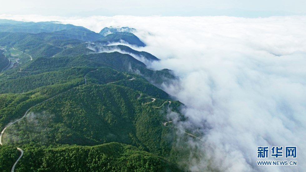 6月27日清晨,“軒轅故里”甘肅省天水市清水縣山門鎮(zhèn)出現(xiàn)壯美云海勝景,山巒之間云霧繚繞,潔白流云與峰巒疊嶂交相輝映,恰似一幅水墨山水畫卷,宛若人間仙境。新華網(wǎng)發(fā)(周文濤 攝)