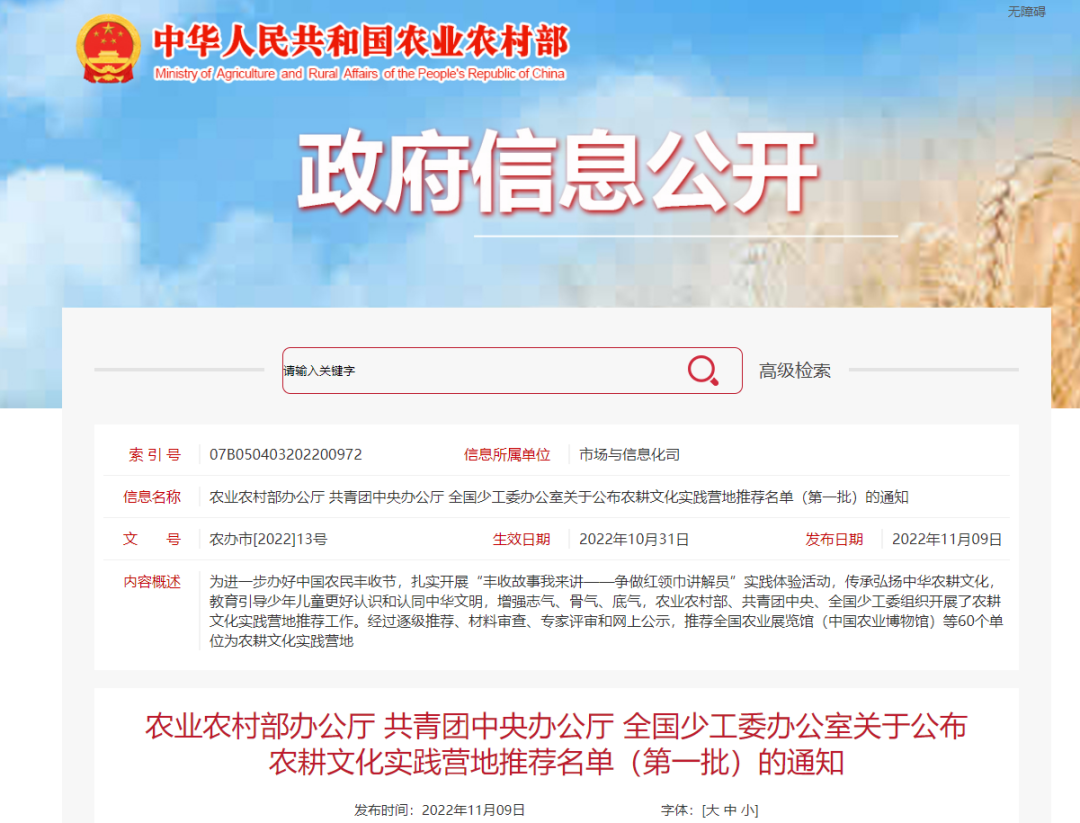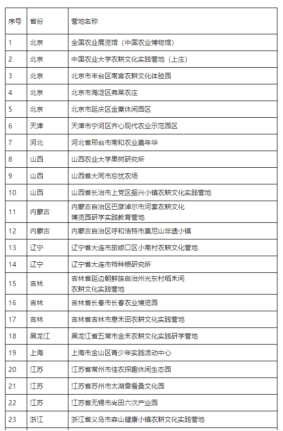 農(nóng)耕文化實踐營地推薦名單(第一批)