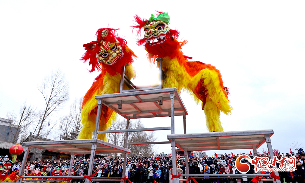 2月2日,張掖市民樂縣開展慶新春迎元宵文化惠民社火匯演活動(dòng),在民俗文化村內(nèi)群龍游騰、高臺(tái)舞獅、醉獅等精彩的舞龍舞獅節(jié)目精彩上演,讓市民在春節(jié)期間樂享文化大餐。