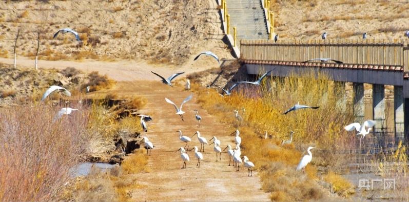 陽春三月,位于甘肅省武威市民勤縣、地處石羊河下游的亞洲最大沙漠水庫——紅崖山水庫,迎來大批白琵鷺、灰鶴、鳳頭鸊鷉、蒼鷺、大雁等候鳥游弋覓食、追逐嬉戲、展翅翱翔。