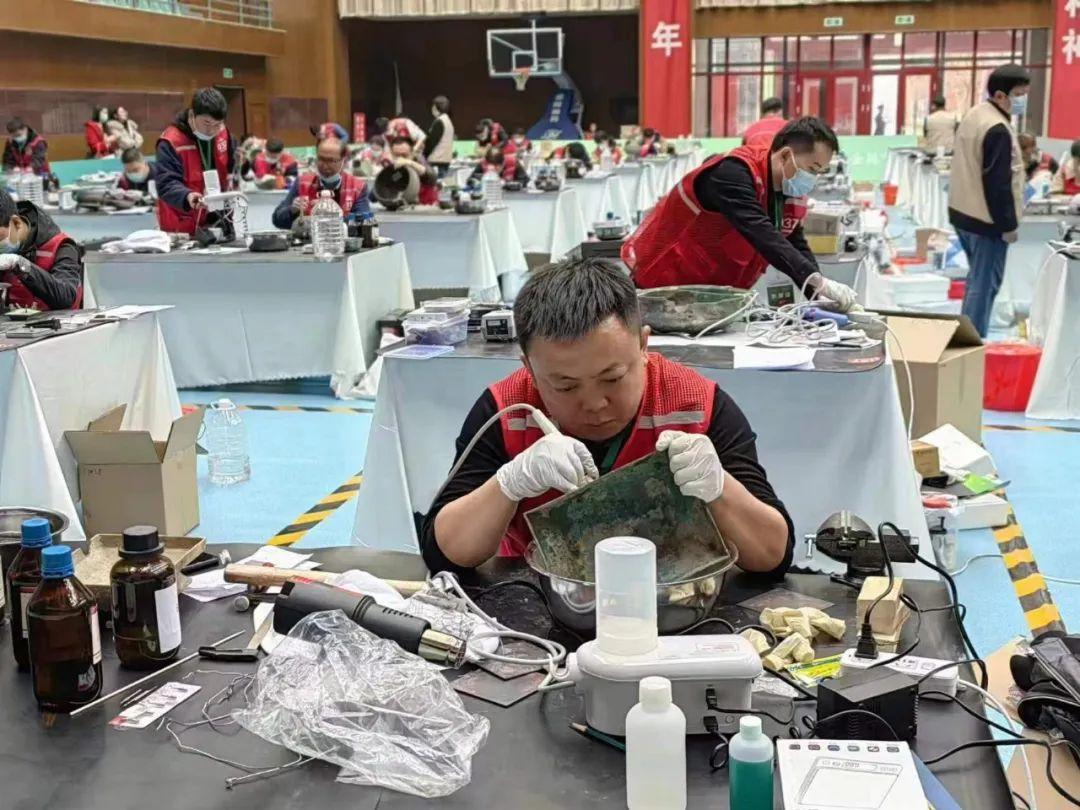 張偉在比賽現(xiàn)場修復(fù)青銅簋