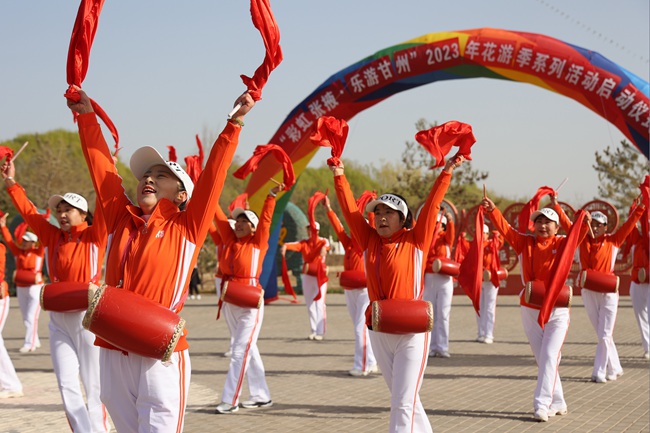 人民網(wǎng)蘭州4月9日電 (記者高翔)4月8日,“彩虹張掖·樂游甘州”2023花游季系列活動(dòng)啟動(dòng)儀式在甘肅省張掖市潤(rùn)泉湖公園舉行。