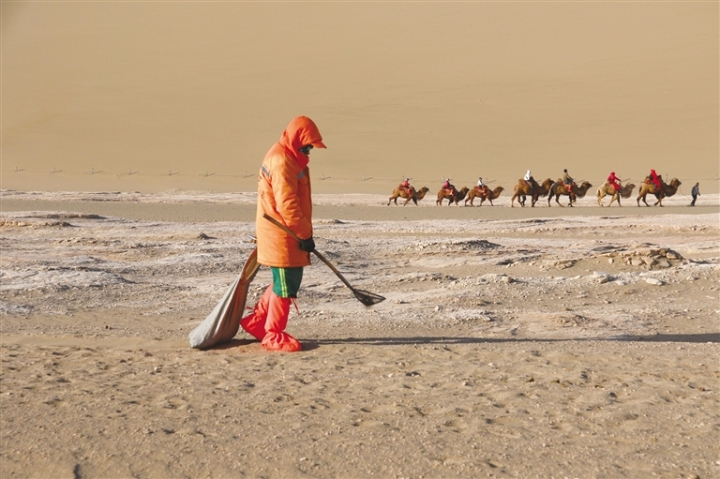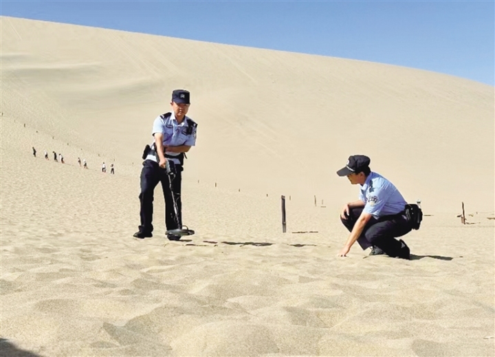 在鳴沙山·月牙泉景區(qū),負責執(zhí)勤的景區(qū)派出所民警,不僅維護景區(qū)及周邊的治安,也為游客提供熱心周到的服務,僅在沙漠中為游客尋找的手機每年就有100余部,尋找返還隨身物品200余件,用“5A”警務服務5A景區(qū)。