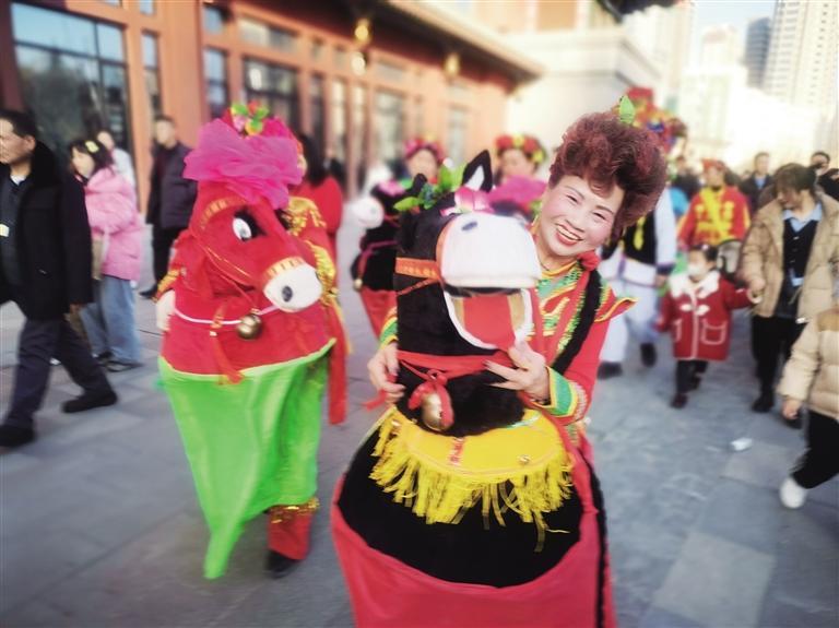 從臘月二十三開(kāi)始,蘭寶平幾乎每天都要參加表演,與記者見(jiàn)面時(shí),已是當(dāng)天她在蘭州老街的第四場(chǎng)表演。一天下來(lái),她從東扭到西,出老街進(jìn)廣場(chǎng),每到一處都是人們歡樂(lè)的源泉和目光的焦點(diǎn)。