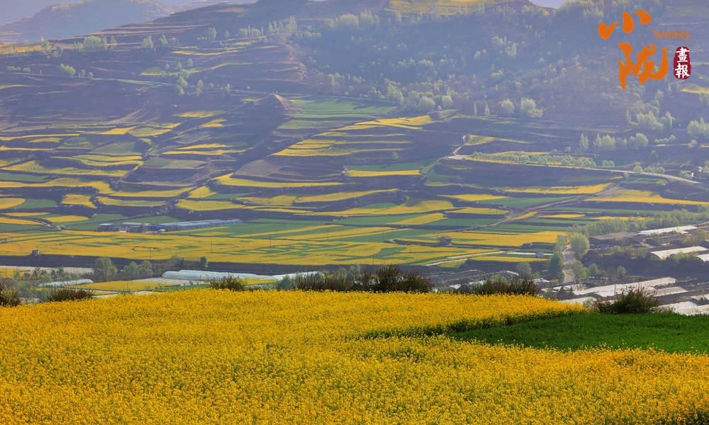 在武山縣龍臺鎮(zhèn)、灘歌鎮(zhèn)、楊河鎮(zhèn)等高山地區(qū),萬畝優(yōu)質(zhì)高山油菜已花開成海,梯田式的油菜花與遠(yuǎn)山近水、村落農(nóng)家交相輝映,與綠油油的麥田相映成趣,形成了獨具風(fēng)格的山水田園風(fēng)光,為大地呈現(xiàn)出最美的春色。