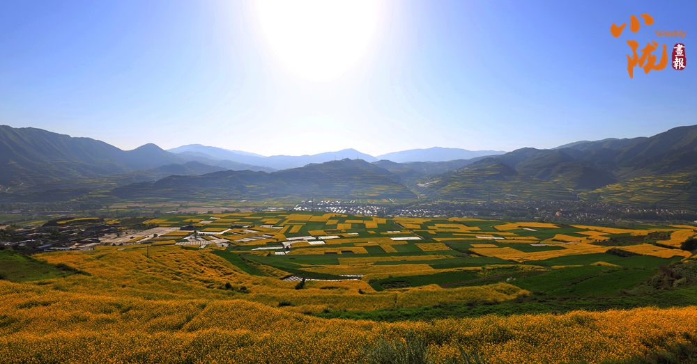 四月的武山,渭河兩岸、高山川道萬畝油菜花競相綻放,滿目金黃,美不勝收。