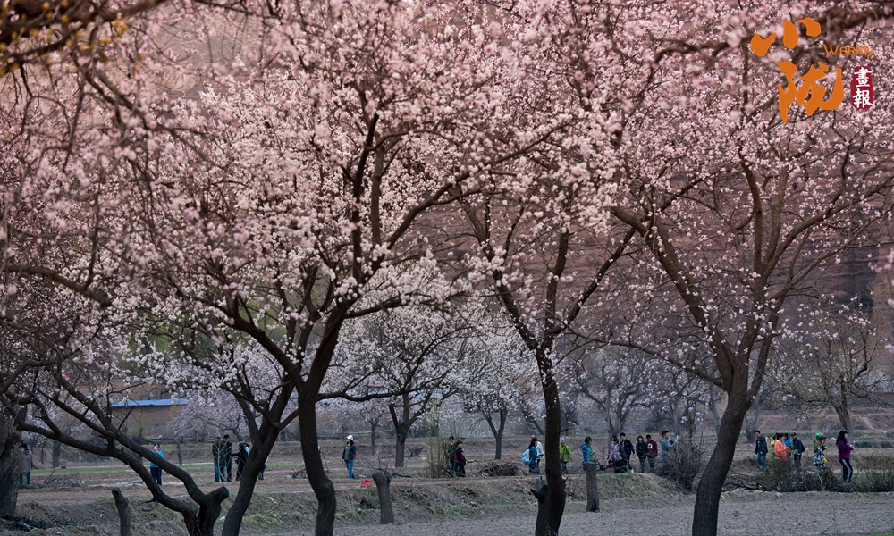 伴著杏花的芬芳,行走在杏花林間,一家老小、親朋好友三五成群地在杏花樹下留念拍照,來感受“醉美”唐汪川。