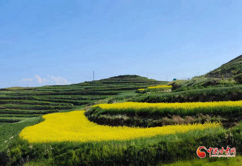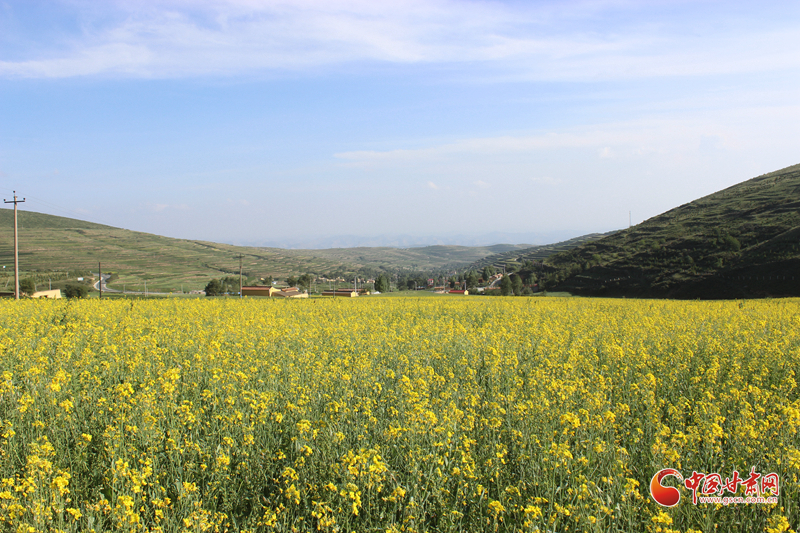 沿著普銀公路來到了被譽(yù)為“臨洮最北面的鄉(xiāng)村”的上營瓦窯灘村。這是個寧靜美麗的小山村,秋高氣爽,這里有一大片黃澄澄的油菜花地。一下車,站在普銀公路邊上,一眼望去,田間地頭,成片的油菜花與藍(lán)天白云青山交相輝映,村舍藏匿于廣闊的油菜花叢中,蜜蜂、蝴蝶在花叢中翩翩起舞,恰似一幅美麗的田園畫卷。