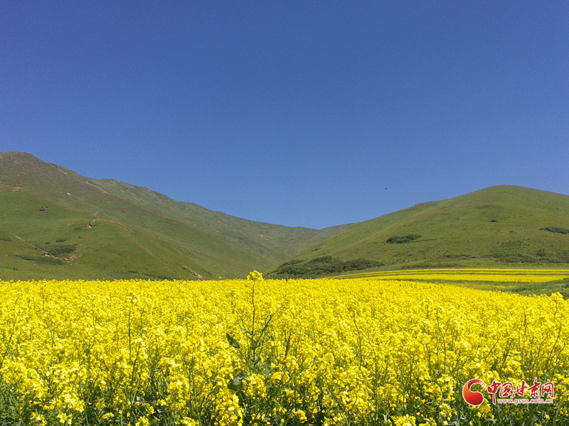 大山深處,秋風(fēng)嬉戲,藍(lán)天澄碧,大地金黃,白云悠然。蜂鳴,蝶舞,花香混合著泥土的芬芳,天地猶如一幅散著金光的風(fēng)景畫,渾然一體,如夢似幻。赤腳踩在綠油油的嫩草上,癢癢的,柔柔的,酥酥的。如母親的懷抱,舒適而安寧。花海更是孩子們的天堂,在里面打滾,摔跤,捉迷藏……揮灑無邪的童真。這時,或在花間嬉戲,或在花徑漫步,或在山野奔跑,或干脆在觸手可及的藍(lán)天白云下,枕著花香,靜靜一眠,把自己放逐在原野上,身心兩忘,回歸一個沒有謊言的世界。安靜,正如無邊無際的虛空;澄澈,又像一望無垠的凈土。清新的空氣,寂靜的原野,一切都是那么凈,靜。一切都融入自然,回歸純真。圣潔,澄凈,忘世,忘機(jī),忘我,又那么浪漫。油菜開始開花。一開始是綠葉叢中一點(diǎn)黃,就好像是綠色的海洋里揚(yáng)著黃色的一桅風(fēng)帆。接著是倆桅三桅……有一天你會發(fā)現(xiàn)綠色的海洋消失了,取而代之的是一片金黃色的閃著耀眼光芒的海平面。微風(fēng)過處,黃色的波濤此起彼伏,后浪推著前浪。有蜜蜂在花間穿梭,時而飛起,時而停在花蕊中辛勤地采著花粉,工作間隙還不忘嗡嗡地哼著歌。蝶兒翩翩飛舞在花海,兒童急急追蝴蝶。好一幅“兒童急走追黃蝶,飛入菜花無處尋”的畫面。白色蝶兒猶如黃色海面上飄著的白云,黃色蝶兒歇息在花的枝頭,你分不清是蝶兒變成了花還是花變成了蝶兒。山區(qū)的油菜花和川區(qū)的油菜花又有著迥然不同的風(fēng)采。