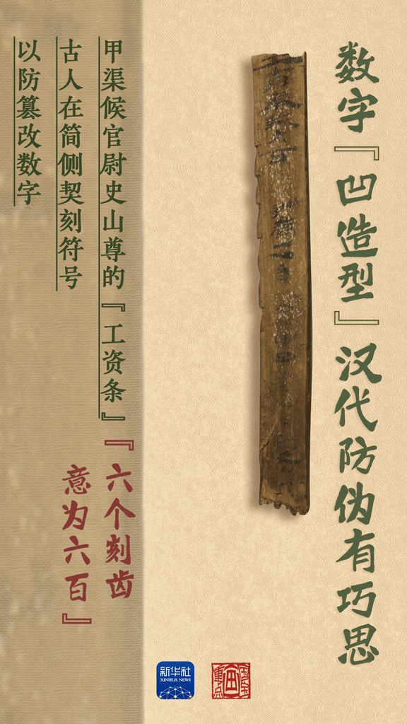 現(xiàn)代人注重防偽,古人也是如此。為了防止他人篡改數(shù)據(jù)等信息,漢代人會在訂立契約或統(tǒng)計數(shù)量時,在簡牘上契刻表示數(shù)字的符號。