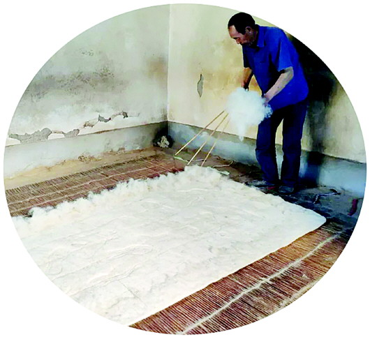 如今,甘谷縣新興鎮(zhèn)三合村張家莊,依然傳承古老的搟氈手藝。其質(zhì)樸耐用的毛氈,保暖隔濕、不易燃,沿用至今。