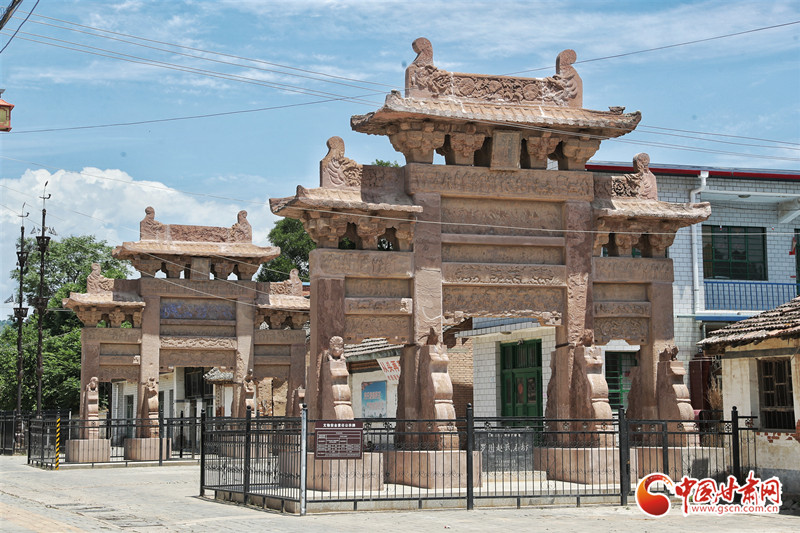 據(jù)介紹,三座牌坊都采用紅砂巖石料鑿磨鑲砌而成,均為四柱三間三層,斗拱歇山頂式,坊面上雕刻有屋舍、山水、人物、飛禽、走獸、花卉、樹木等,其造型優(yōu)美,結(jié)構(gòu)嚴(yán)整,刀法細(xì)膩,形象逼真。