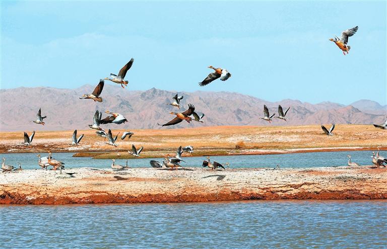 近年來,經(jīng)過當(dāng)?shù)赜嘘P(guān)部門和甘肅鹽池灣國家級自然保護區(qū)的有效治理和保護,野生動物種群逐漸增多。每年遷徙至此繁衍生息的鳥類種群和數(shù)量不斷增加,時常上演萬鳥翔集的壯觀場景,勾勒出一幅和諧壯美的大自然畫卷。
