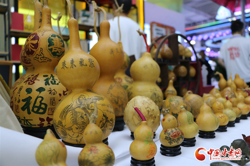 走進第三十屆蘭洽會非遺文創(chuàng)館,陳氏雕刻葫蘆的第二代傳人陳兵正在展臺前為駐足參觀的群眾講解著刻葫蘆的過程。