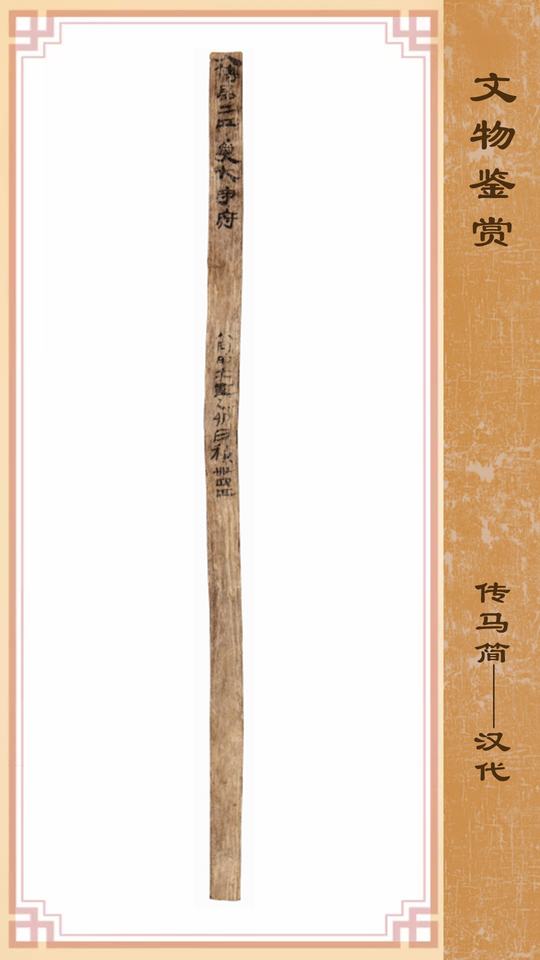 此簡1990年出土于敦煌懸泉置遺址,長23.4厘米、寬0.9厘米、厚0.3厘米,上下完整,紅柳材質(zhì)。