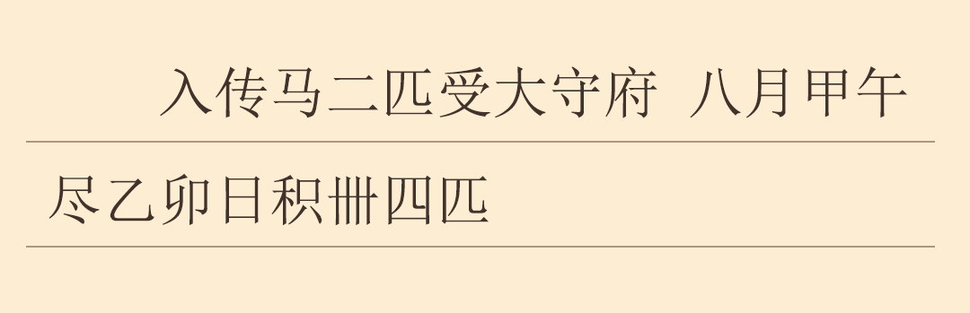 此簡性質(zhì)為懸泉置的馬匹出入簿,大意為懸泉置接收郡太守府兩匹傳馬,至八月甲午盡乙卯日,懸泉置共有馬匹44匹。簡文是對懸泉置馬匹固定資產(chǎn)的真實記錄,也是研究漢代政府機(jī)構(gòu)對資產(chǎn)管理與調(diào)撥的詳實資料。