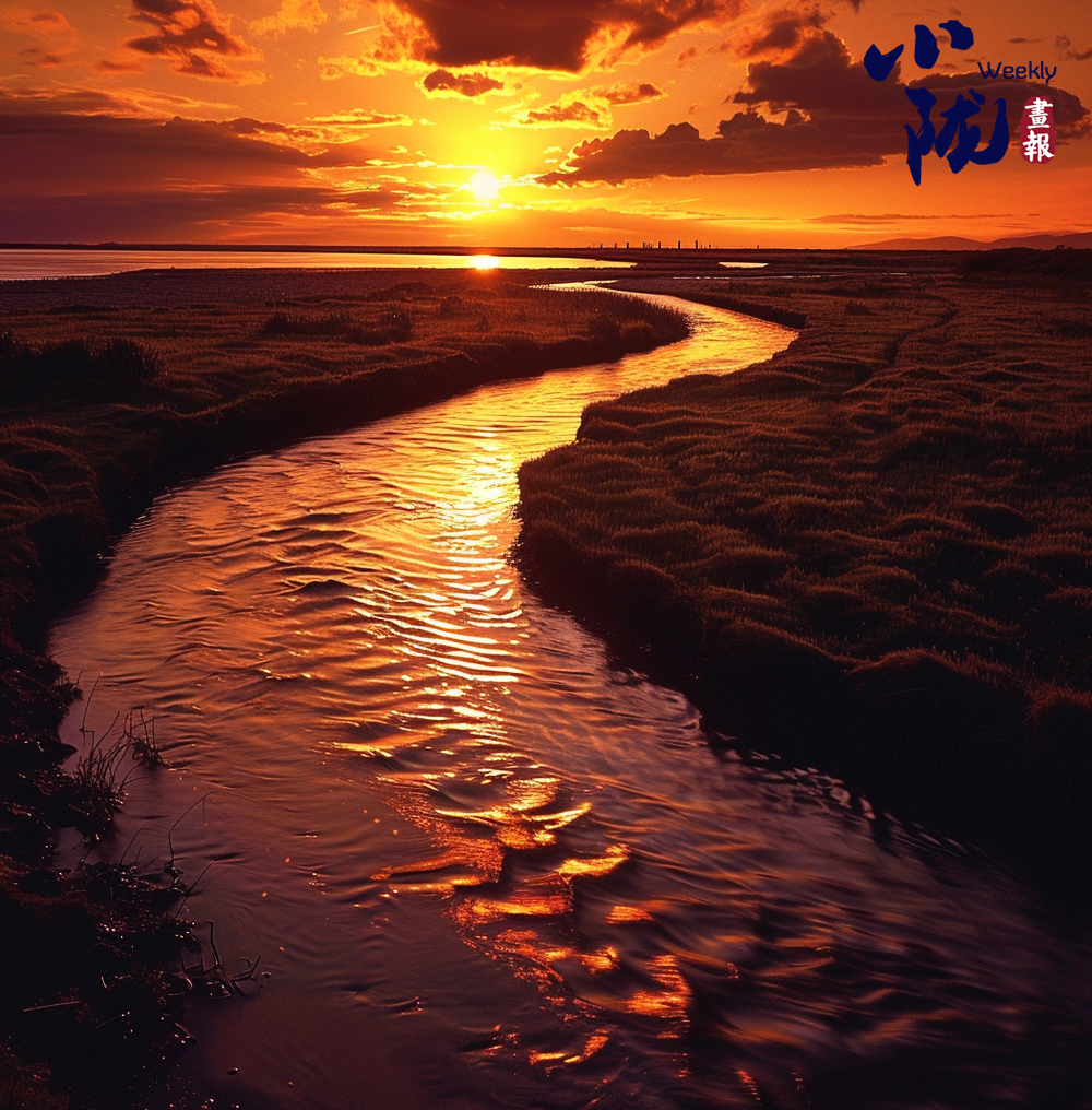 晚霞映紅了半邊天,河水波光粼粼,像染了一抹瑰麗色彩,與遠處的灌木叢形成了一幅動人的畫卷,那震撼人心的自然之美,只有置身其中才能感知。