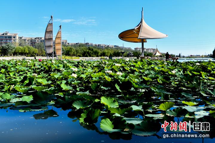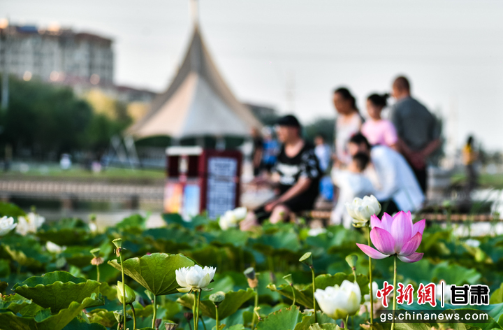 “接天蓮葉無窮碧,映日荷花別樣紅。”盛夏時(shí)節(jié),敦煌大漠綠洲持續(xù)高溫,鳴沙山下各種植物茁壯生長(zhǎng),黨河風(fēng)情線上的荷塘里荷花也競(jìng)相綻放,紅的、白的,一朵朵,一簇簇,在微風(fēng)中搖曳,吸引眾多游人前來休閑避暑,賞荷納涼。王斌銀 攝