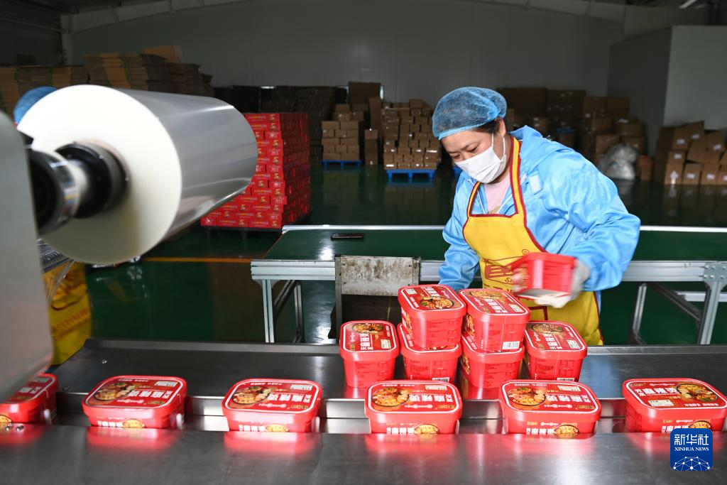7月22日,工作人員在甘肅天水市一家麻辣燙企業(yè)車間內(nèi)包裝產(chǎn)品。新華社記者 呂帥 攝