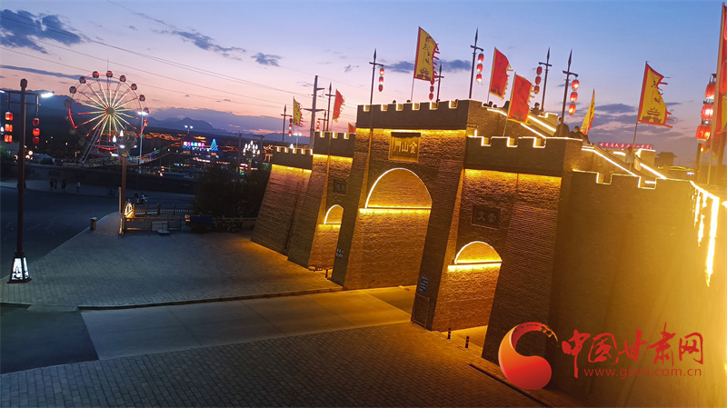 夏日的民樂夜晚,褪去了白天的熱度,輕撫的晚風吹來20℃的夏天,祁連山下民樂成為一片避暑圣地。此刻,民樂古城已經(jīng)燈火璀璨,行走在古城的城墻上,遠處的晚霞接近天邊,近處的涼風帶來愜意,對于行走了一天的游客來說,無疑是一個放松打卡的好地方。