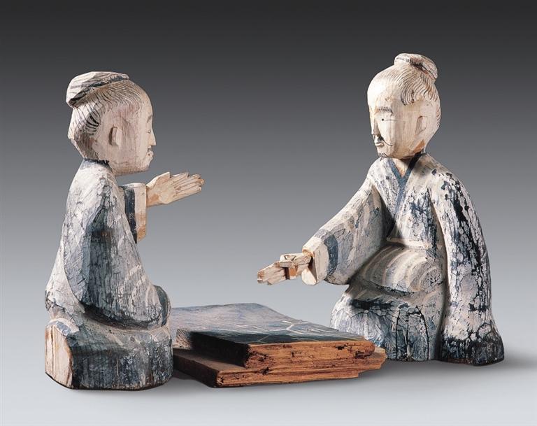 2.漢代木雕藝術的曠世杰作:彩繪木六博俑