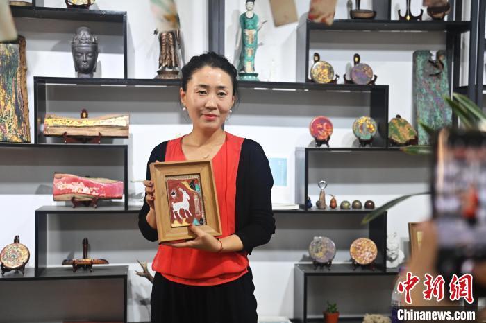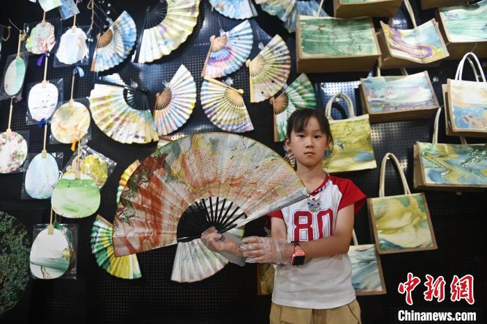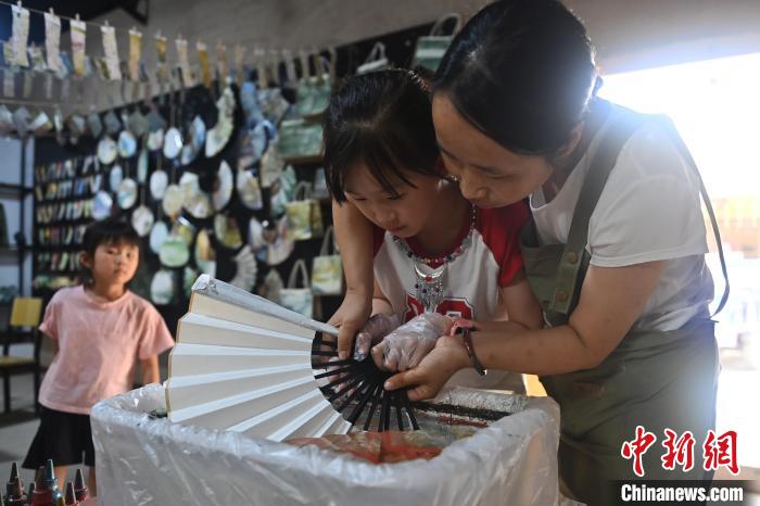 8月20日,甘肅敦煌莫高里工匠村內(nèi),學員展示研學成果。工匠村開設(shè)了泥板畫、彩繪、雕塑制作、剪紙、農(nóng)耕體驗等課程,現(xiàn)已發(fā)展成為一個集敦煌文化講堂、壁畫書法研習、美術(shù)設(shè)計、彩塑制作教學、篆刻藝術(shù)、傳統(tǒng)釀酒體驗、農(nóng)業(yè)產(chǎn)業(yè)發(fā)展等于一體的多功能實訓基地。中新社記者 李亞龍 攝
