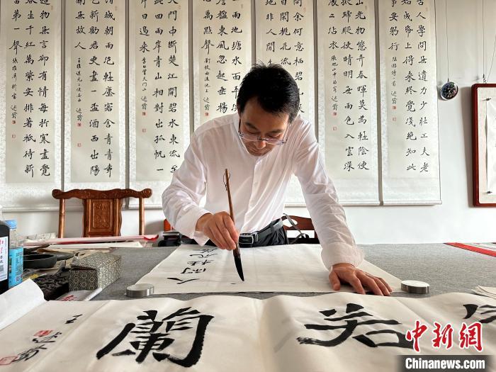 “我從小練習(xí)繪畫,從學(xué)校畢業(yè)后直接回縣里開了自己的書畫工作室,現(xiàn)在入駐悅心國際書畫村,收入還可以。最主要耐得住寂寞,靜下心來打磨技藝。”“90后”通渭本土?xí)嫾伊茉诋?dāng)?shù)匦∮忻麣狻Kf,書畫在年輕群體當(dāng)中很受歡迎,尤其前來跟他學(xué)習(xí)的學(xué)生很多。(完)