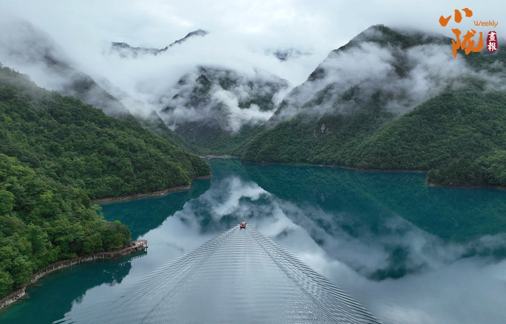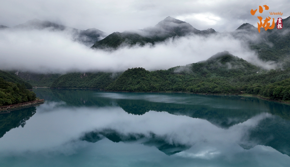 雨后,文縣天池云霧繚繞,翠綠的山巒、碧綠的湖水,相互輝映,美輪美奐,宛若仙境。