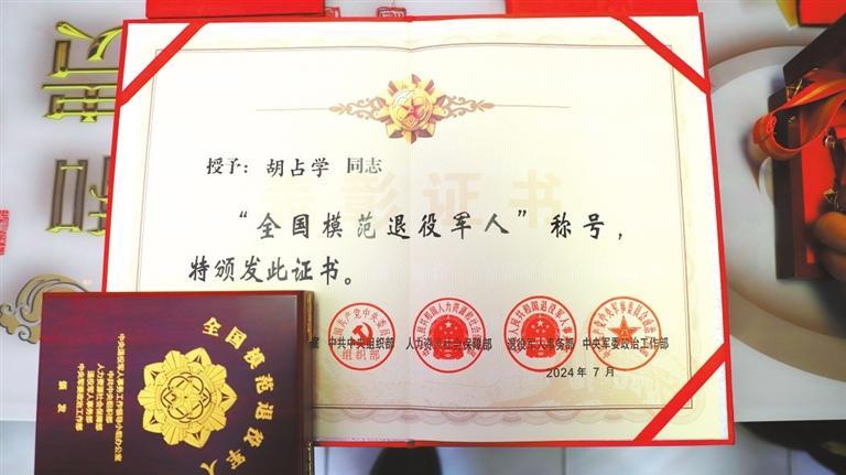 今年8月,胡占學(xué)被人力資源和社會(huì)保障部、中共中央組織部、退役軍人事務(wù)部、中央軍委政治工作部等軍地相關(guān)部門(mén)聯(lián)合授予“全國(guó)模范退役軍人”榮譽(yù)稱(chēng)號(hào),這是對(duì)退役軍人的最高榮譽(yù)和最大褒獎(jiǎng)。