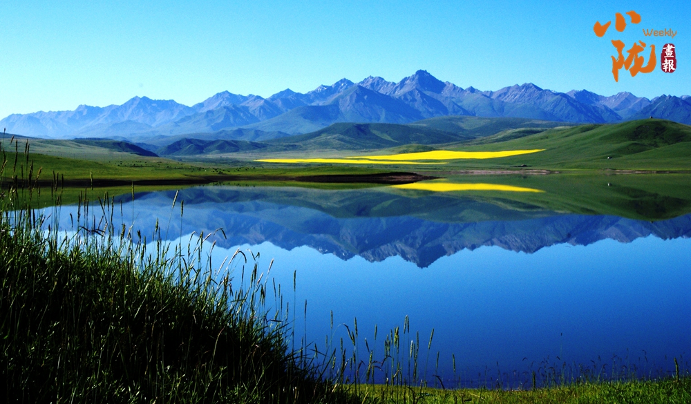 西大河水庫(kù)碧亮賜透,宛若草地上鑲嵌的藍(lán)寶石,遠(yuǎn)處的牛羊、油菜花和壯麗的祁連山倒影水中,像一幅水彩畫?!?/p>
