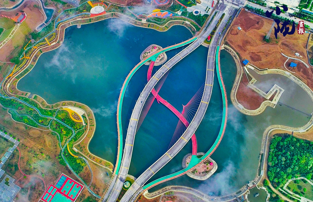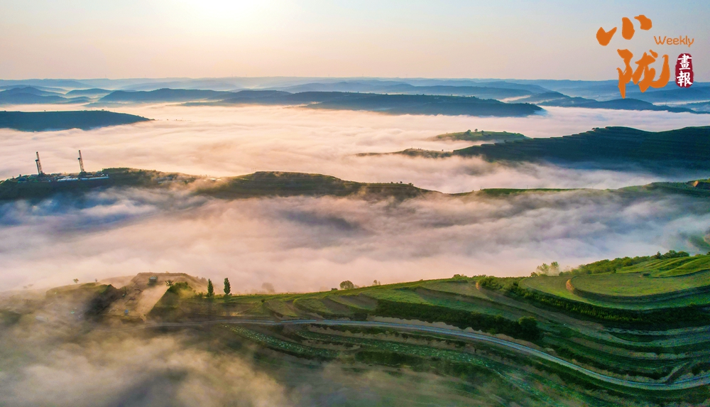 傍晚,空中泛起淡淡云霧環(huán)繞在溝壑之間,呈現(xiàn)出華池別樣的霧海景觀,遠處一架架抽油機在上下舞動,“舞姿”靈動而優(yōu)美。