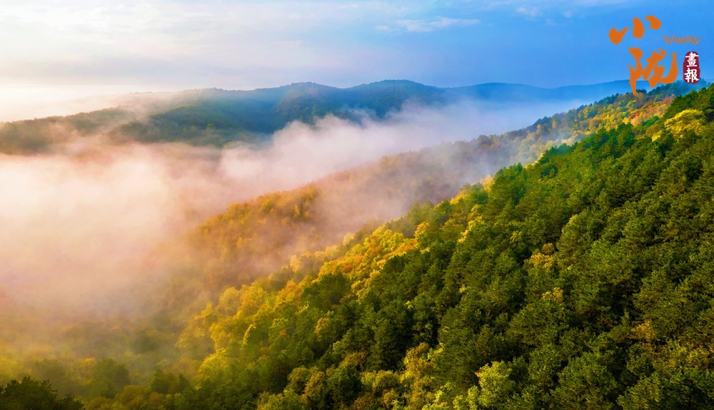 雨后日出,云遮霧蓋,為子午嶺披上一襲薄紗。金黃、深綠在陽光下熠熠生輝,彰顯著生命的活力,形成了一片生機勃勃的天地。