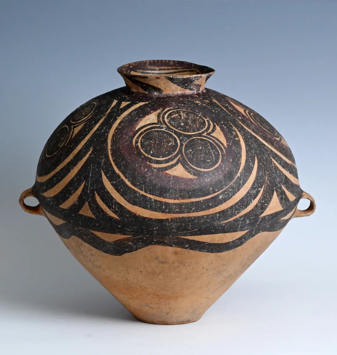 馬家窯文化創(chuàng)造了大批彩陶藝術(shù)精品,被譽(yù)為新石器時(shí)代彩陶之冠。形式優(yōu)美的漩渦紋是馬家窯類型的典型代表作,精美的半山類型彩陶又被公認(rèn)為馬家窯文化的巔峰階段,這一時(shí)期的彩陶器形勻稱圓潤,紋樣采用黑紅兩色繪制,更加繁麗精致,器具造型和圖案渾然一體,給人帶來賞心悅目的美感享受。