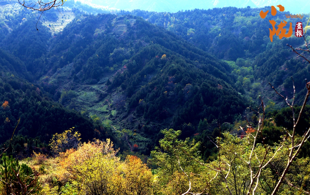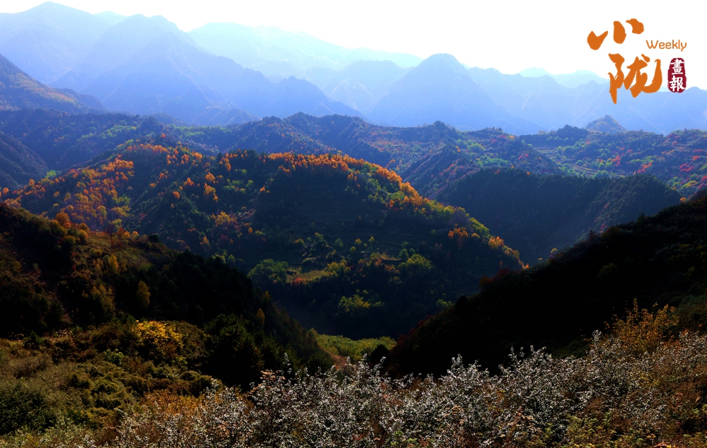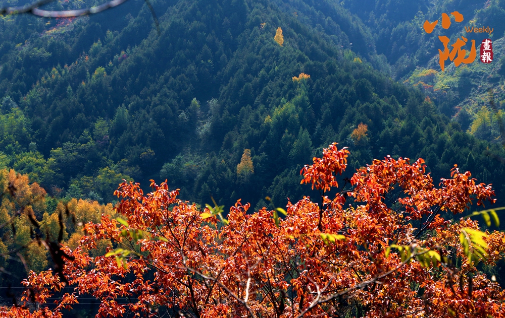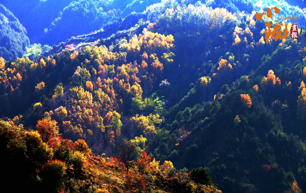 在陽(yáng)光照耀下,中梁山披上多彩盛裝,山川、溝壑層林盡染,美景如畫。