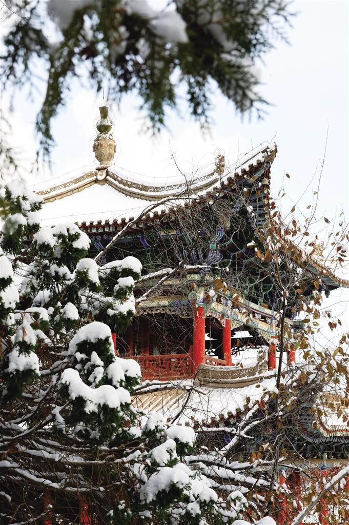 11月25日,雪后的蘭州五泉山公園銀裝素裹,迷人雪景如畫。古老亭臺(tái)樓閣紅墻玉頂、參天古樹玉樹瓊枝,宛如大地書寫的一幅“水墨丹青”,美不勝收,游客紛至沓來,賞雪、拍照,盡情享受清爽的空氣和潔白的美景。 奔流新聞·蘭州晨報(bào)記者 裴強(qiáng) 攝