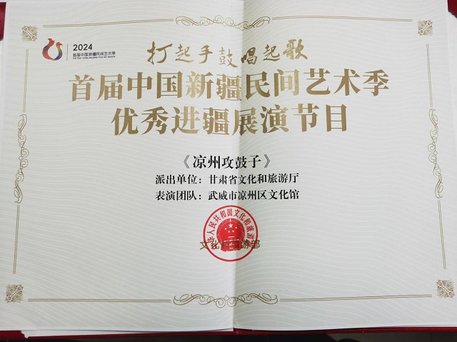 中國(guó)甘肅網(wǎng)12月24日訊(西北角·中國(guó)甘肅網(wǎng)記者 任磊)近日,文化和旅游部公布了首屆中國(guó)新疆民間藝術(shù)季優(yōu)秀進(jìn)疆展演節(jié)目名單,甘肅省《涼州攻鼓子》成功入選。