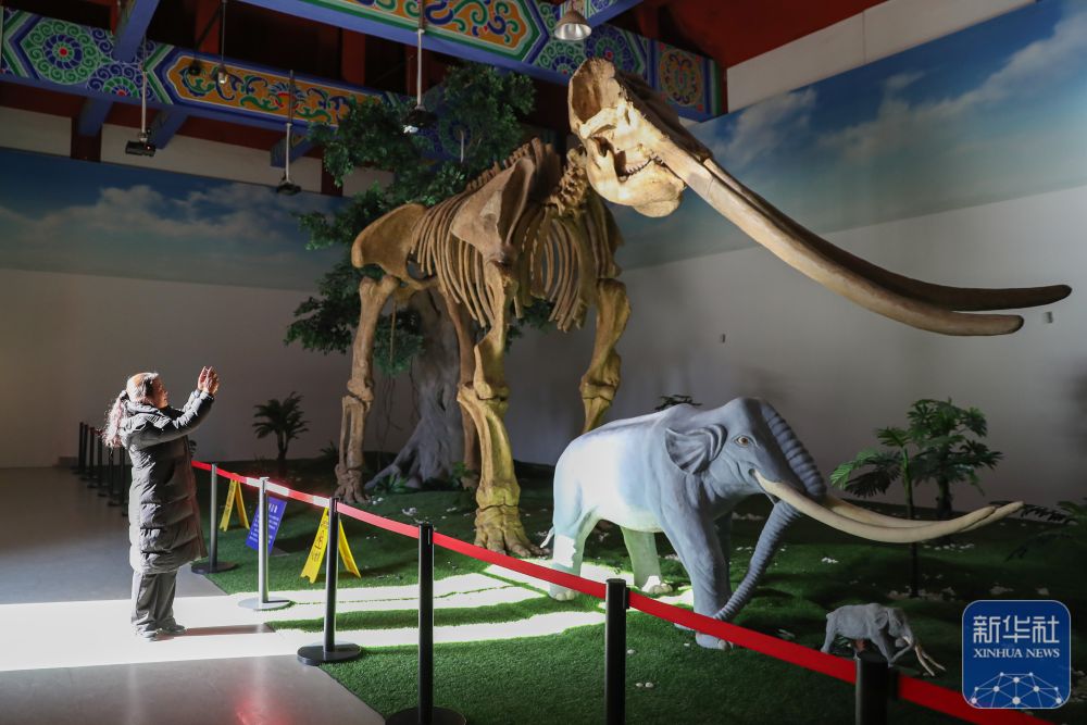 1月5日,在慶陽市合水縣隴東石刻藝術(shù)博物館黃河古象展廳,張雪峰拍攝黃河象化石(復(fù)制品)。