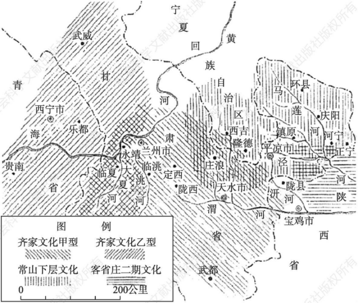 常山下層文化是黃河中上游新石器時代晚期的重要文化遺存,最早發(fā)現(xiàn)于甘肅省鎮(zhèn)原縣常山遺址而得名。胡謙盈先生認(rèn)為其主要分布在西北黃土高原東部的涇、渭兩河流域上游區(qū)域,其分布范圍東至子午嶺西側(cè),西至鳥鼠山東側(cè)的渭源縣,北至寧夏回族自治區(qū)南部,南至陜西省彬縣及甘肅天水地區(qū)南部。學(xué)界普遍認(rèn)為,它是由仰韶文化晚期發(fā)展而來,同時也是齊家文化的重要源頭之一。依據(jù)碳14測定,其年代約為公元前2930±180年,相對年代晚于仰韶文化,早于先周文化,是西北新石器時代晚期的文化紐帶,在研究中國史前文化演進(jìn)中占據(jù)重要地位。