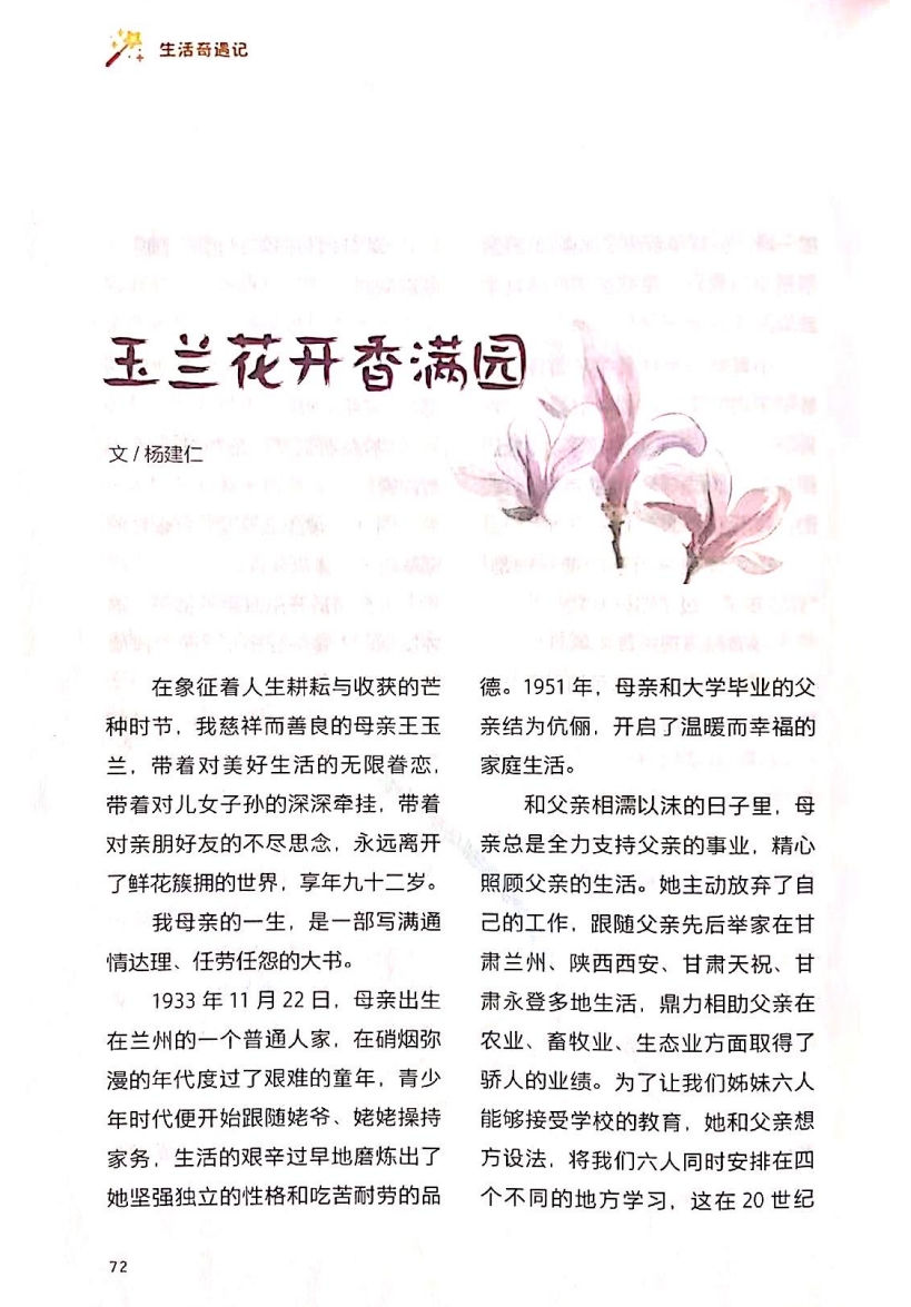 如果生命是一樹花開(kāi),母親便是一朵最燦爛、最耀眼的玉蘭。